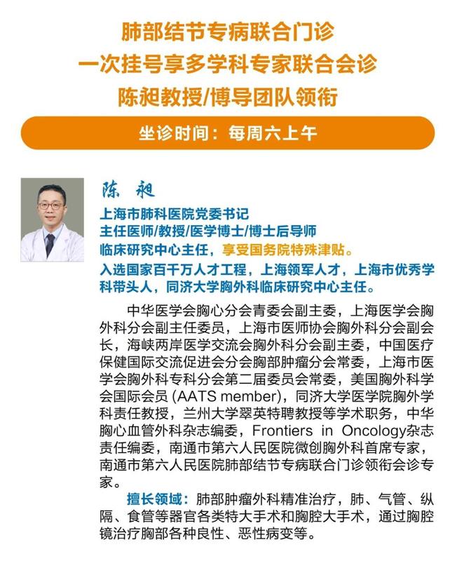 查出肺结节该看哪个科?市六院肺结节专病联合门诊,每周六上午开诊!