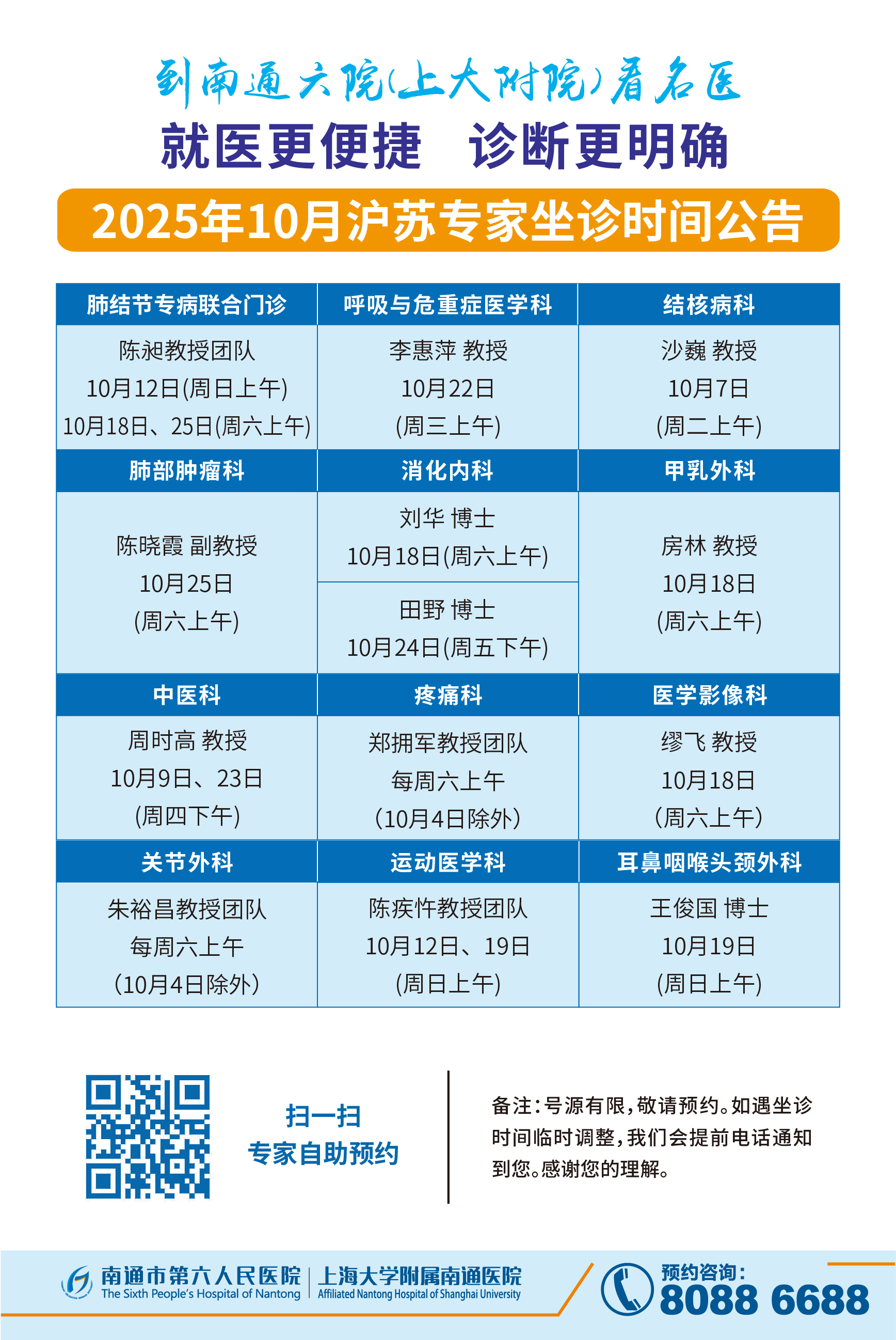 门诊排班表最新出炉!