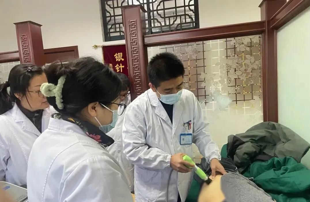 疼痛科主任谢南海在义诊后,又赶往相关科室指导冲击波治疗。王大爷因髋关节骨关节炎专程前来就诊。谢主任一边调整设备参数,一边向围观的医务人员讲解操作要领:“冲击波的能量不是固定的,要以患者能耐受的疼痛范围为标准,大家可以先感受一下……”治疗过程中,他不断询问患者感受,并在结束后详细交代注意事项和后续治疗计划。卫生院的医生们表示收获颇丰,不仅学习了技术,更感受到了医者仁心的温度。